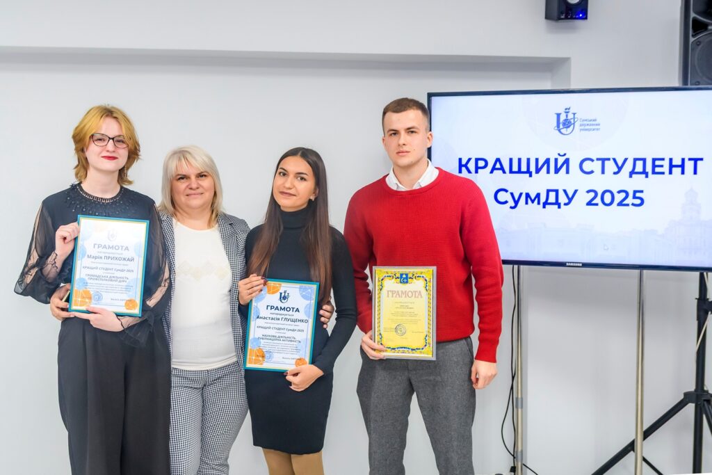 Кафедра адміністративного, господарського права та фінансово-економічної безпеки радо повідомляє про успіхи студентів спеціальності 081 “Право” Навчально-наукового інституту права, які стали переможцями щорічного університетського конкурсу “Кращий студент СумДУ 2025”.